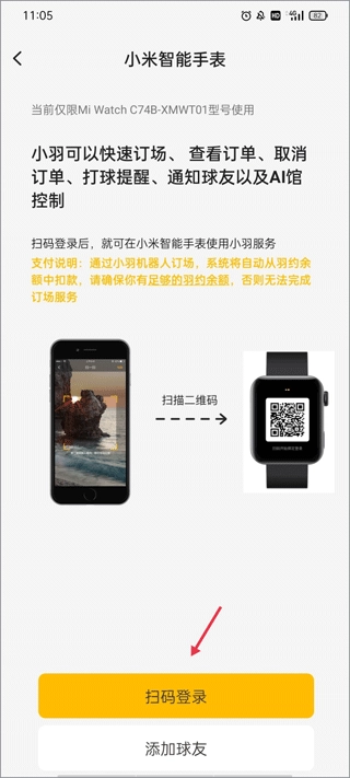 把手机的扫描框对准手表屏幕上的二维码,等识别成功,设备配对就完成了。
