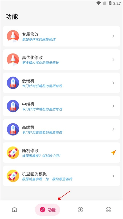 进入软件后,可在首页的快捷修改区域选择其中一个选项进行点击修改。