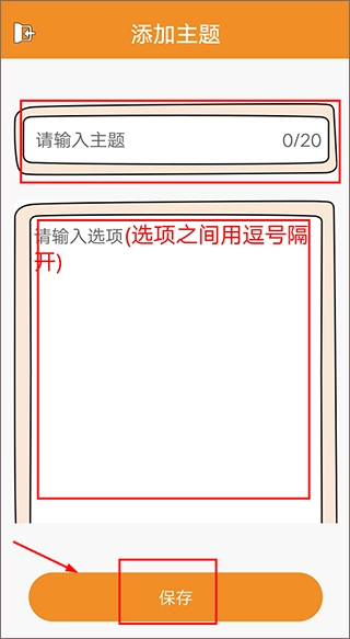 在【添加主题】页面输入令你纠结的问题,输入完毕后点击保存按钮就可以了。