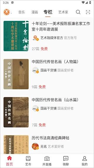 知识付费板块可助力艺术家开启直播课程及系列专栏,拥有实时互动与课程回放的功能,构建起系统化的艺术教学及传播体系。