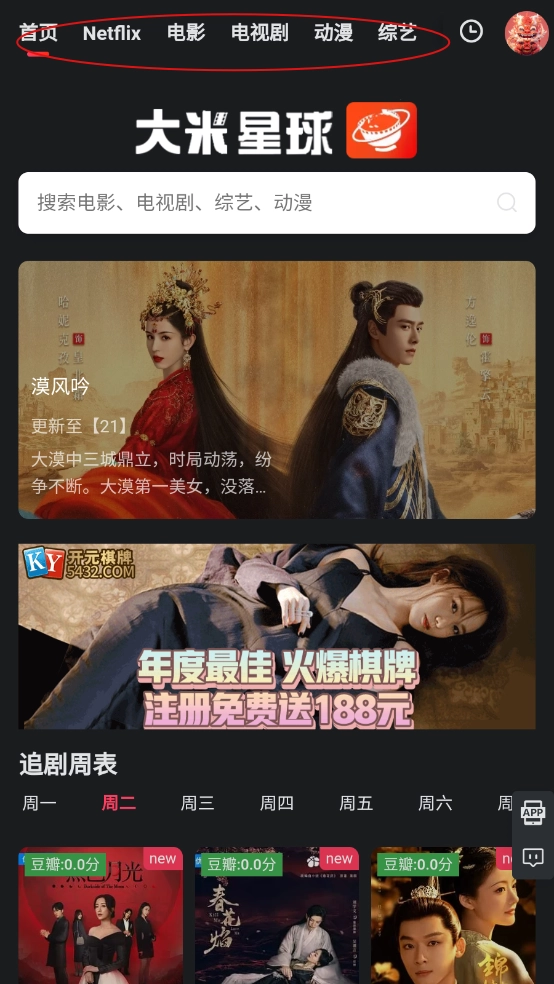 下滑就能看到追剧周表,每天更新的资源都能一网打尽。