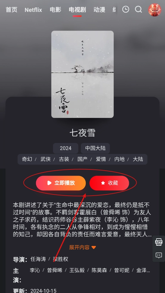 进入详情页查看,可以进行点击收藏或立即播放即可。