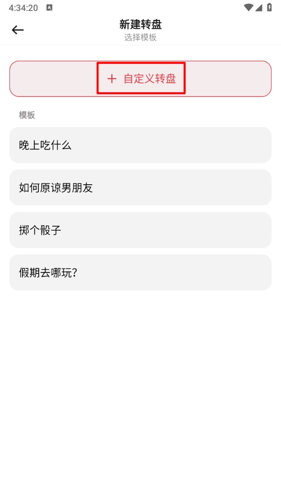 然后点击右上角的三个点,就能进行新建选项、恢复转盘、新建转盘列表等操作。