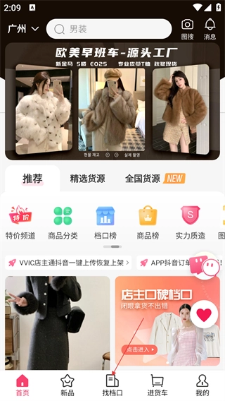 在软件的首页,点击底部的【找档口】选项,即可进入找档口页面。