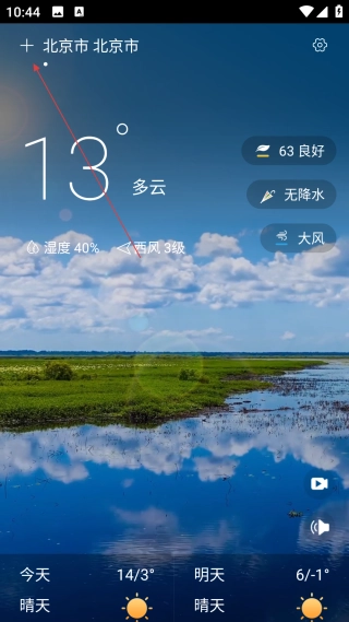 在天气界面,点击左上角的【+】按钮,即可进入城市管理界面。