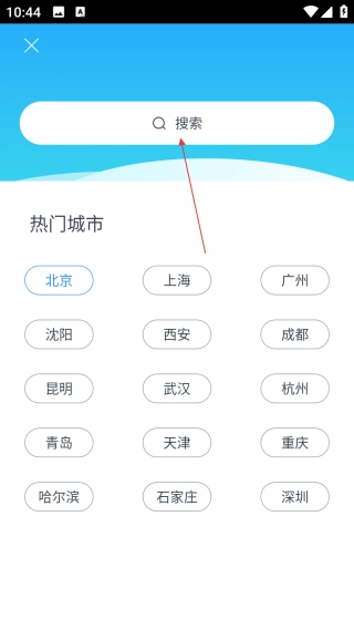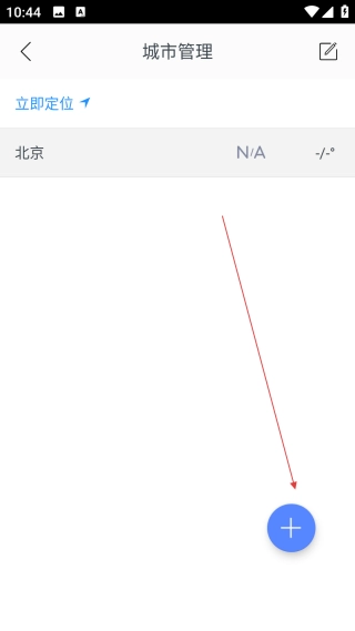 在城市管理页面,点击右下角的【+】按钮,就能进入城市搜索页面。
