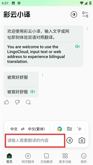 在彩云小译的首页,只要在输入框里填入文字,就能轻松体验双语对照翻译功能,操作起来特别便捷呢。