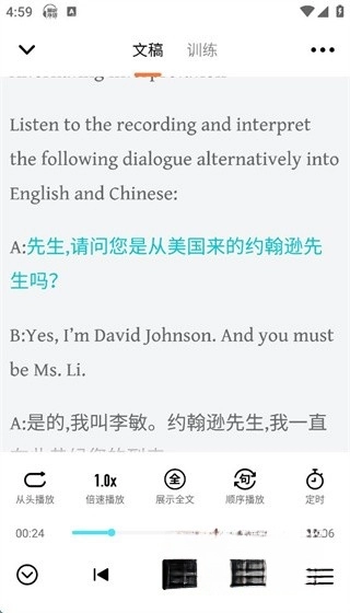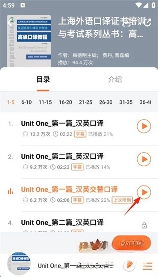 之后,使用应用内的二维码扫描功能再次扫描书本上的二维码,就能获取该书籍配套的全部音频授权,便于在线收听和播放。