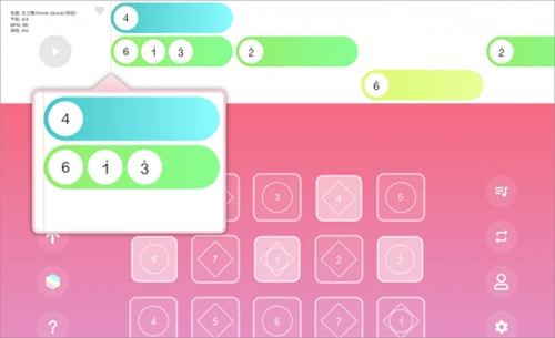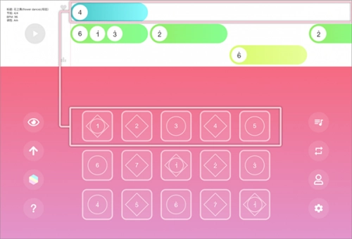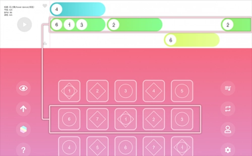 点击歌曲标题后稍作等待,乐谱就会加载到练习界面。乐谱共有三行,其中第一行与键盘的第一行按钮相对应。