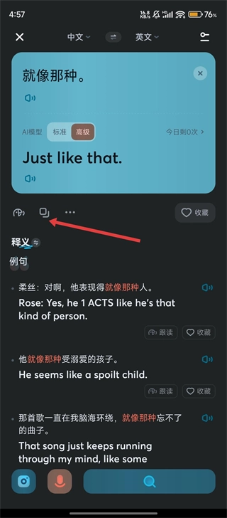 翻译结束后,系统会自动生成对应的译文,我们还能点击复制按钮,把翻译结果保存下来或者分享出去呢。