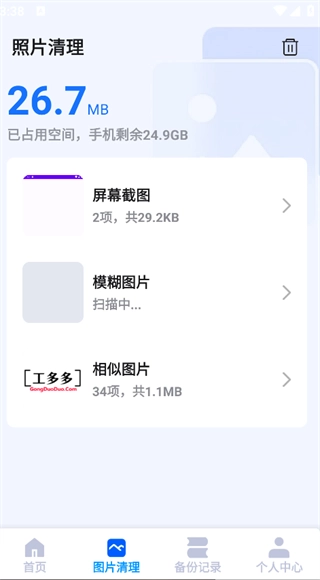 点击页面下方的“图片清理”选项,就能看到照片清理功能。