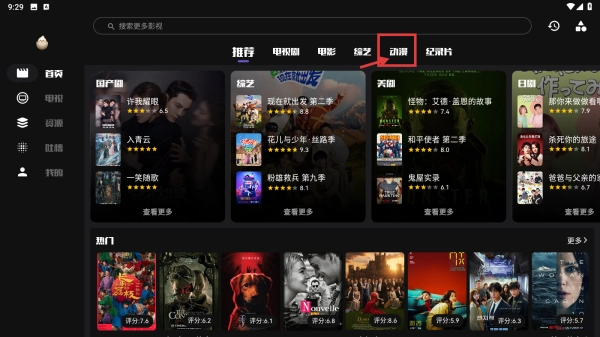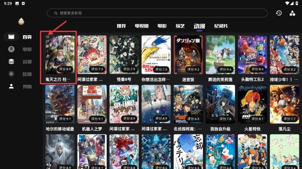 打开影视应用,点击顶部的动漫分类标签,进入动漫内容专区。