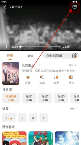 进入动漫以后点击右上角的TV