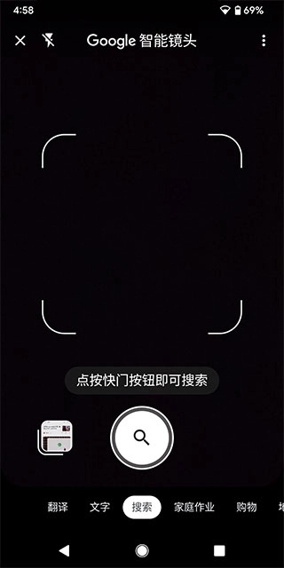 打开谷歌搜索应用,点击搜索框右边的相机图标。