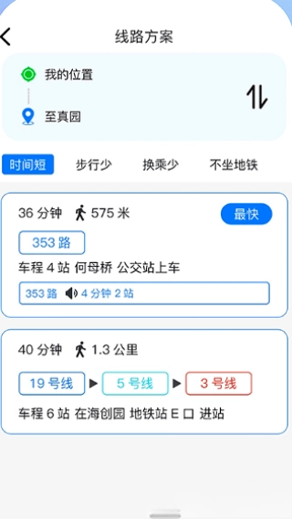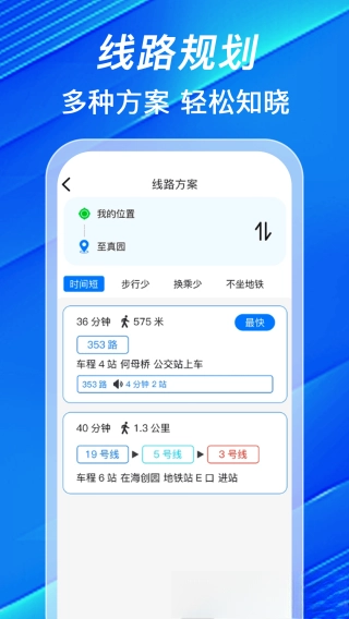 从耗时短、步行少、换乘少等多个维度出发,筛选出最为理想的出行路线。