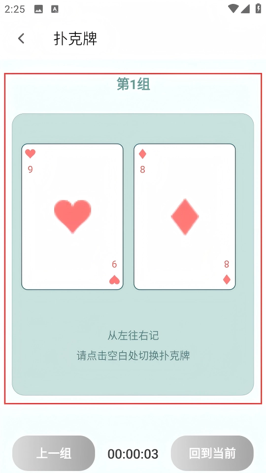 在扑克牌训练页面,就能开启【第1组-扑克牌】的记忆训练。