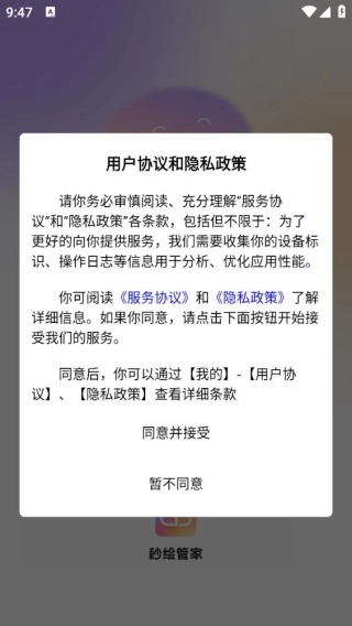 安装软件后打开,弹出用户协议和隐私政策,点击同意。