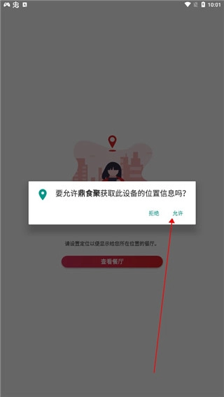 第三步,点击允许鼎食聚访问此设备的位置信息。