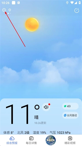 在天气主界面,点击左上角的加号按钮,即可进入城市管理页面。