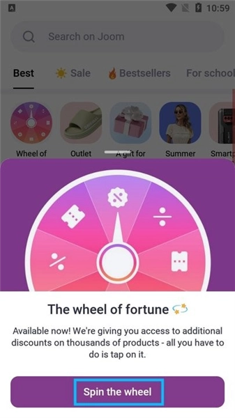 在本站打开Joom应用,按照页面提示操作,转动幸运转盘,即可领取专属优惠。