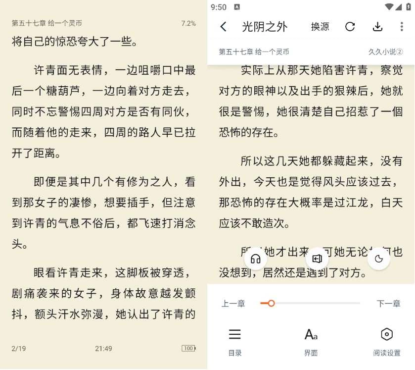 最后阅读界面也可圈可点,各种自定义都有,甚至还支持听书。