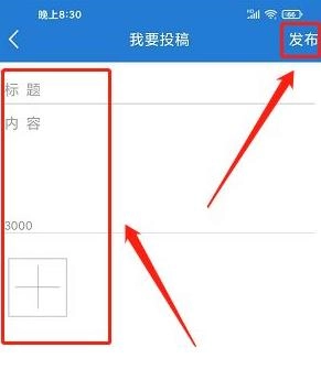 进入“我要投稿”页面,依次填写标题、稿件内容、上传相关图片,最后点击【发布】按钮即可完成投稿操作。