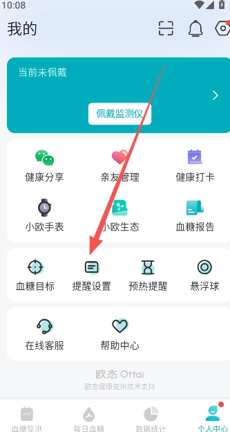 在用户个人中心界面,点击提醒设置功能选项。