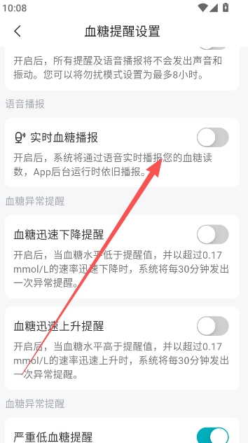 在此点击开启实时血糖播报语音提醒。
