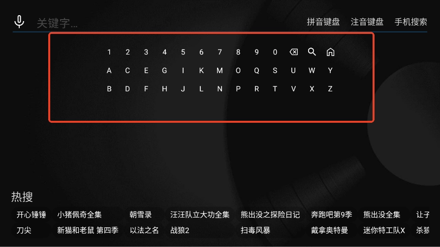 打开魔方视界TV,进入应用首页点击左上角搜索按钮