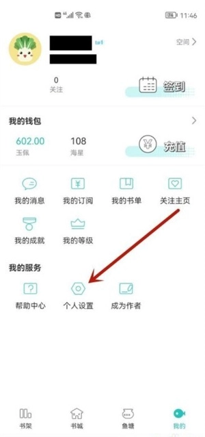 点击【我的】页面,点击【个人设置】。