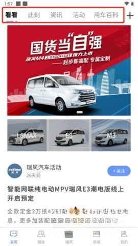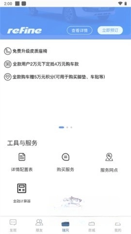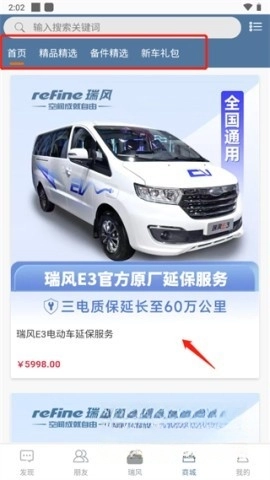 下方中间瑞风页面可查看车型信息与售前售后服务。
