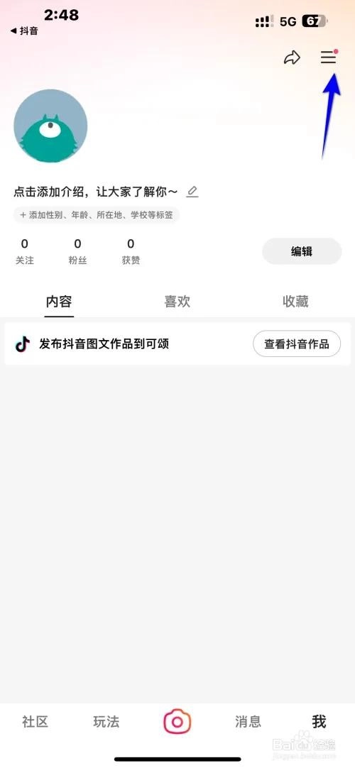 打开可颂拍照应用,点击个人页面的三横线图标,进入设置菜单页面。