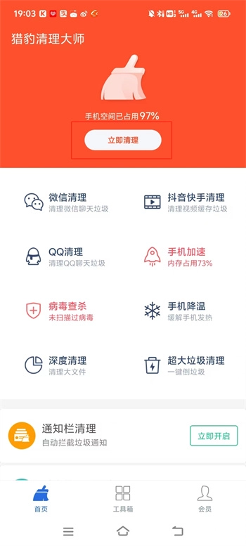 猎豹清理大师能够协助用户迅速清理手机里的顽固垃圾文件,它会为用户提供全面的手机清理功能服务,让用户的手机使用体验更为流畅。此外,该软件还能帮助用户清除各类场景短视频软件和聊天软件中的垃圾,把隐藏在手机深处的垃圾文件全部清理干净,从而为用户带来更顺畅的使用感受。