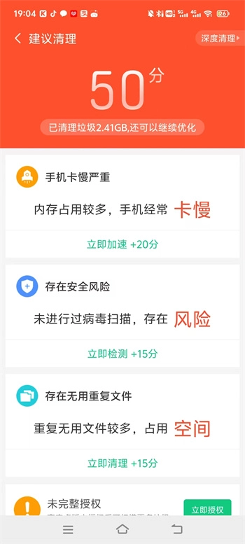 之后就能完成自己的清理任务,查看这款软件给手机打出的评分。