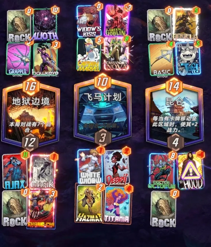 这套持续流上限比较高,纳摩+克劳可以打出单区19点,钢铁侠+克劳更加可以点数爆炸出乎意料。就是要注意防备一下对手的针对牌,持续卡组比较怕女巫师,如果对手点数较小突然snap或者我方点了snap后对手反点,大概率对手有女巫师,注意及时撤退止损。持续卡组在漫威终极逆转游戏中是一种稳健且具有控制力的策略,适合喜欢通过策略布局和长期规划来赢得游戏的玩家。通过合理构建卡组和精心规划战术,玩家可以在战场上形成强大的控制力,从而取得胜利。