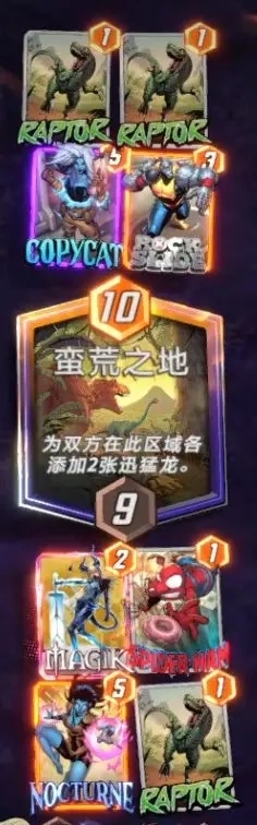 在漫威终极逆转中,动物园卡组以快速部署和低费用卡牌为主,重点在于迅速填满场地并利用buff卡来控制多个区域,以下是一套二池动物园卡组推荐: