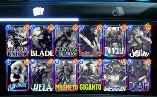 卡组及玩法简介:终极版中增加了4张五池卡:黑骑士、亡刃将军、闪烁、红浩克。这套终极版把海拉弃牌卡组推到了一个高收益高风险的极端卡组的位置。目前玩这套卡组的海拉粉丝很多,在高分段、比赛场上也有不小的出场率,胜率全看亡刃将军和海拉的发挥,亡刃把把切海拉的爽感请各位看官自行体会。黑骑士主要用来配合弃牌组件获得高战力黑剑,切到次元行者一把20战力的大宝剑在手的安全感不必多说。闪烁组要用来配合白光花火赚取极高的战力差,红浩克目前是全游戏顶级打手可以说是众多卡组的必带。