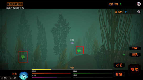 5、冒险中吃水里漂浮的树叶或者三叶草恢复饥饿以及增长年龄,年龄满了就能回出生点找龟仙人解锁新鱼种(再从小养到大)。
