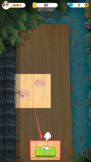 用「Free」初始金币购买第一只猫,将其放置在房间里就能自动赚取金币(0.00/5秒)。