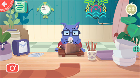 玩家进入厨房后,可自主挑选道具开展烹饪操作,完成烹饪后点击右上角的箭头即可。