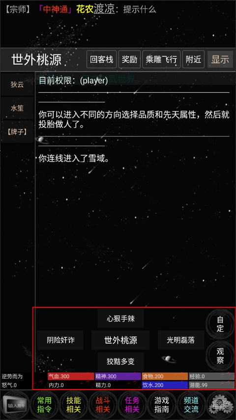 第一步:挑选性格与天赋,多数武功存在性格方面的限制,你可以查阅游戏指南->技能介绍,也能输入指令helpskills来了解相关信息。