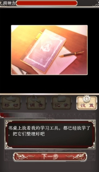 仔细搜查所有可探索的区域,先检查书包,接着取走爱丽丝的学习用品,再前往讲台拿走上面的纸张,之后在调查模式中选择【思考】选项,即可触发后续剧情。