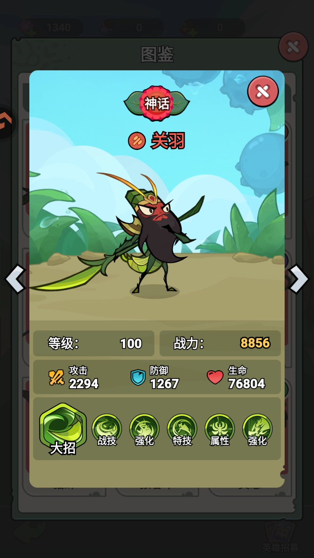 控制型输出前排 特点:我一直很喜欢关羽的形象,昆虫与关羽的适配度让我觉得相当高。作为前排角色,关羽兼具控制、伤害与吸血能力,称得上比较全能。攻击翼纹建议优先选择吸血属性,其次是抗击退和攻击回能的符文;装备方面先升级武器与衣服,确保血量和攻击的基础属性。关羽的出货率处于中等水平,可根据实际情况考虑是否兑换该英雄。他的先手控制机制能够和大多数英雄形成良好配合。