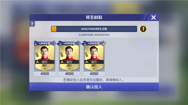 可能不少人会有这样的疑问:转生功能既然这么强大,那要是前期就把S级球员都转生了,到后期拿到SS级球员时,岂不是会面临转生资源不足的困境?其实这种担心是多余的。一个球员在转化时能产出多少转生点数,和他自身的培养程度密切相关。举个例子,品质和名字都相同的球员卡,2星的转化后得到的转生点数会比1星的更多。所以前期我们用心培养的A卡或者S卡,到了后期完全可以转化为SS卡转生所需的点数,大家不必过于忧虑资源会被浪费。