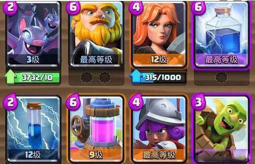 这套卡组采用胖子、王子搭配机甲的经典推进体系,双法术负责清障铺路,每次进攻都能稳定消耗对手血量。猎人的盾牌机制让敌方不敢轻易换路突袭,猎人配合其他单位解场后,胖子就能顶到桥头发起反打,这套组合几乎无解。要是胖子难以突破防线,还能转用矿工偷血;法术选择上火球更克制皇家猪,毒药则对付墓园更有效。