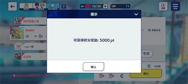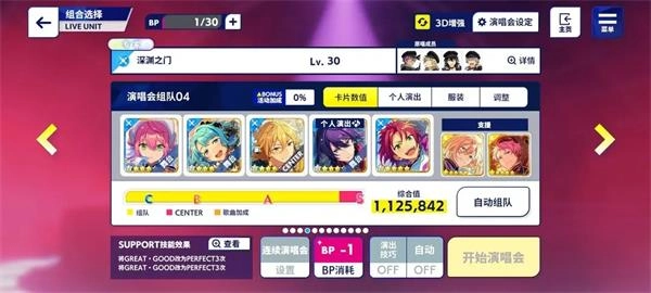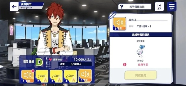 当上述四个要求都达标后,就能解锁级别挑战任务了。这个任务相对简单,只需要把该偶像的卡片放在组队的“center”位置,然后完成指定的演唱会,并且达到一定分数完成打歌就行。