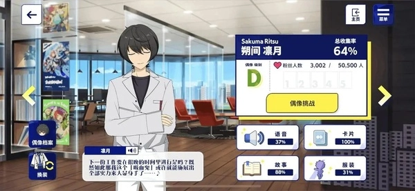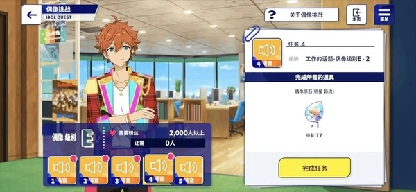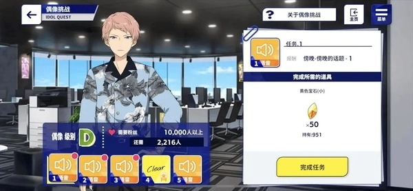 粉丝数量是偶像等级提升的硬性指标,毕竟每次等级提升仅解锁5个语音远远不够,还得等粉丝数达到相应标准,才能开启等级提升任务的挑战。比如从E级升到D级,需要先攒够2000个粉丝才能解锁挑战;从D级到C级,解锁挑战的粉丝门槛更是直接涨到10000个——这样逐级递增的跨度相当大,难度也是最高的。