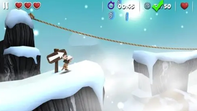 继续往前走,到了印第安探险第30关的第三个岔路口,我们选上面那条路,这时候得用二段跳跳到最高处再滑翔,不然就会直接摔下去。