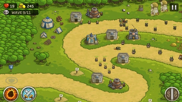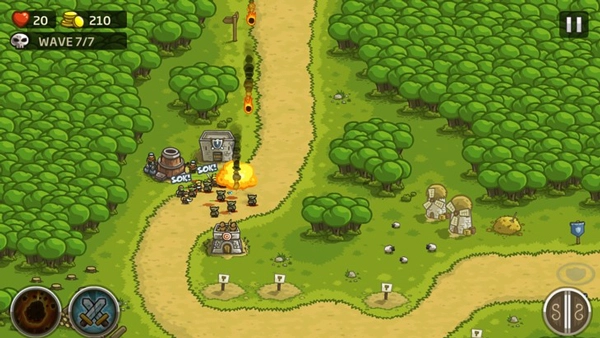 另外,在《皇家守卫军》里一般会提供两种辅助性质的战术技能召唤选项:其一为召唤农民部队,该部队可通过星星来增强能力,尽管其战斗力相对薄弱,不过却能切实减缓敌方小怪的推进速度;其二是火球术或者闪电链这类范围性高伤害法术,比较适合在敌人聚集得较为密集的情况下运用。把这两种技能和防御塔的火力输出进行合理搭配,能够显著提高整体防线的坚固程度,还有更多有趣的玩法正等着你来探索体验。