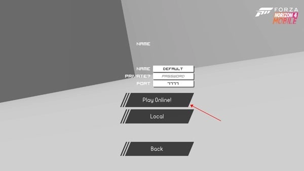 首先打开极限竞速地平线4手机版,进入游戏界面后,找到并点击“play online”选项,即可进入游戏。